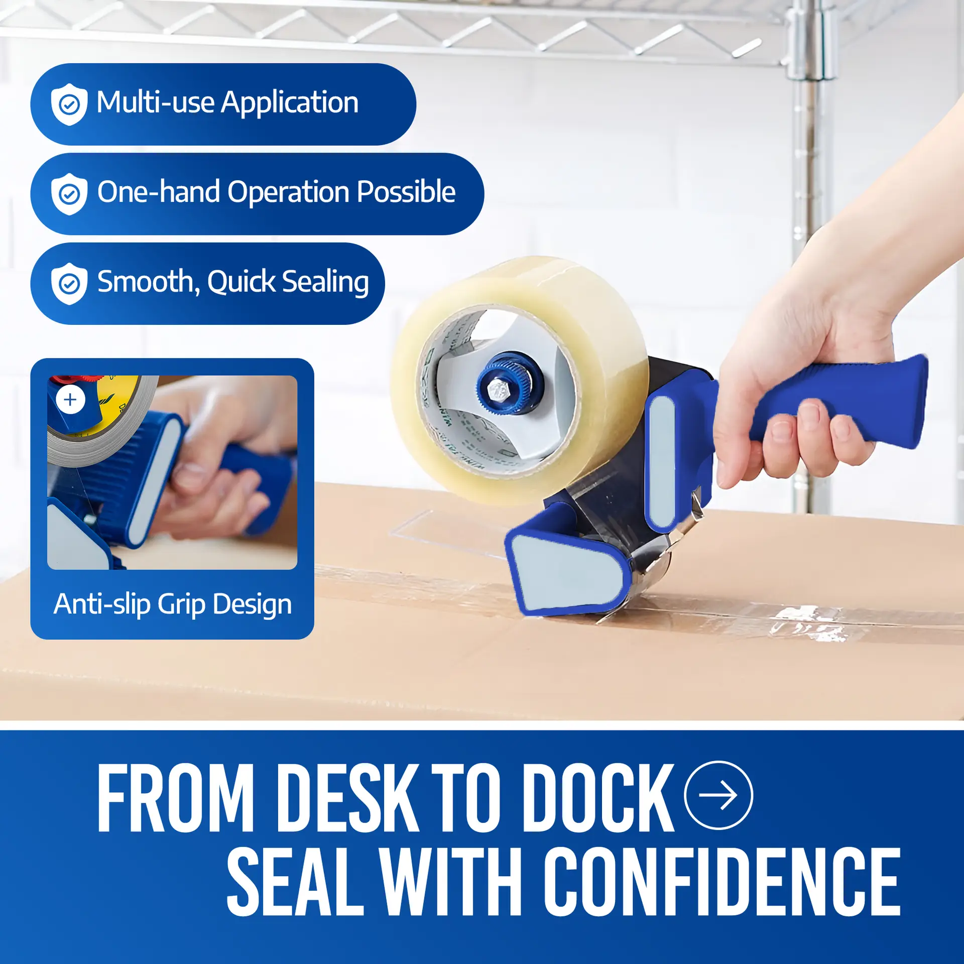 A packing tape dispenser is an essential tool for anyone who wants to seal boxes quickly, efficiently, and with a professional finish. Designed for convenience and speed, this dispenser holds standard rolls of heavy-duty packing tape, making it perfect for shipping, moving, or warehouse use. Its sturdy frame provides durability for daily use, while the ergonomic handle ensures comfort during long packing sessions. The built-in sharp steel blade allows for clean, precise cuts every time, eliminating the frustration of tangled tape or uneven tearing. Adjustable tension control helps you apply the tape smoothly and tightly, reducing waste and improving package security. Whether you’re sealing small cartons or large, heavy boxes, a packing tape dispenser ensures consistent results and saves time on every job. Ideal for e-commerce businesses, fulfillment centers, offices, and home moving projects, this tool improves productivity while delivering a secure seal that stands up to transit and storage conditions. With a quality packing tape dispenser, you’ll streamline your packaging process, protect your shipments, and make packing faster, easier, and more efficient.